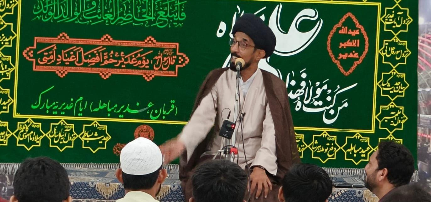 آخر میں مولانا سیف عباس نے کہاکہ عید غدیر سے عید مباہلہ ان دونوں عیدوں کو جو ڑ کر ہم کو ہفتہ ولایت کا انعقاد مسلسل کر کے عوام تک اس پیغام کو پہنچانا ہے کہ عید غدیر سب سے بڑی اور سب سے اہم عید ہے جس دن دین اسلام کامل ہوا تھا کیونکہ مو من نے جنت جانے کا راستہ وایاغدیر تلاش کر رکھا ہے اور ہم نے جو دین کو لیا ہےوہ کسی اندھیری اور تاریک کو ٹھری سے نہیں لیا ہے بلکہ ہمارے پاس دین غدیرکے روشن و منور میدان سے آیا ہے ۔ لہذا شک وہ اپنے دین میں کریں جنہوں نے دین تاریکی سے لیا ہے ۔