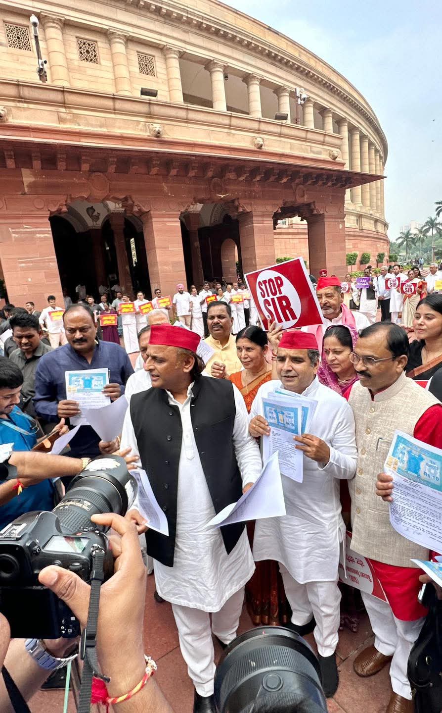 नई दिल्ली: समाजवादी पार्टी (सपा) के राष्ट्रीय अध्यक्ष अखिलेश यादव के नेतृत्व में सपा सांसदों और इंडिया गठबंधन के अन्य नेताओं ने 18 अगस्त 2025 को संसद परिसर में बिहार में मतदाता सूची के विशेष गहन पुनरीक्षण (SIR) और कथित ‘वोट चोरी’ के खिलाफ जोरदार प्रदर्शन किया। इस दौरान “वोट चोर, गद्दी छोड़” और “SIR नहीं चलेगा” जैसे नारे लगाए गए। प्रदर्शनकारी सांसदों ने तख्तियां थामीं, जिन पर ‘SIR लोकतंत्र पर हमला है’ और ‘वोटबंदी बंद करो’ जैसे नारे लिखे थे।