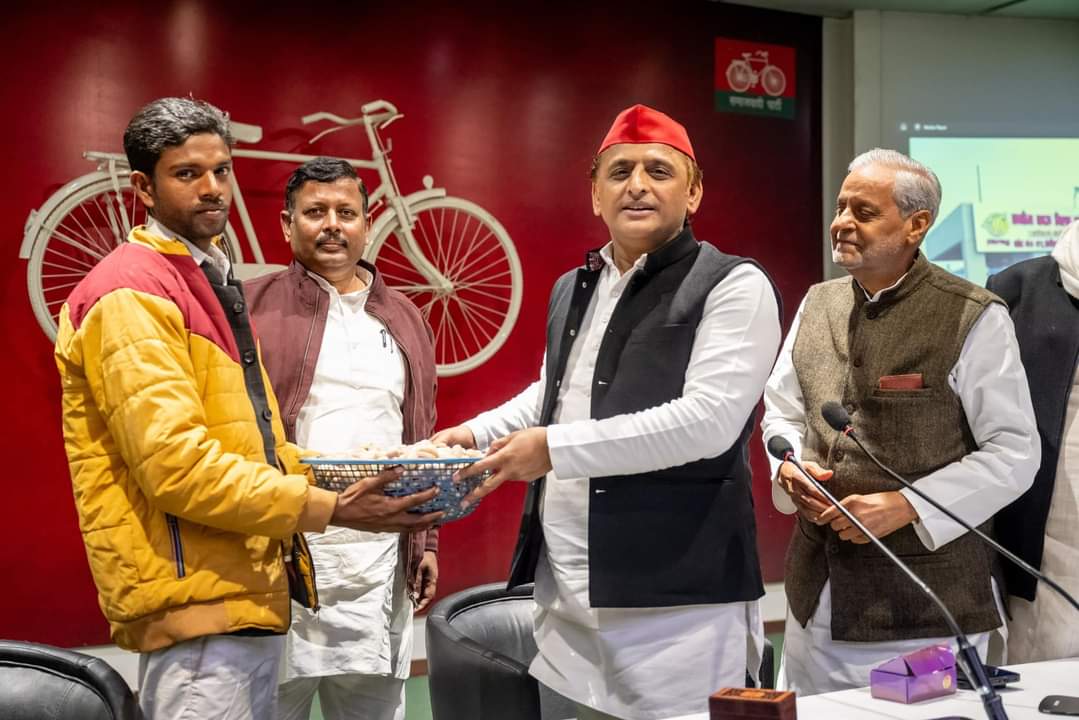 समाजवादी पार्टी के राष्ट्रीय अध्यक्ष एवं पूर्व मुख्यमंत्री अखिलेश यादव को आज रायबरेली जनपद के गांव अघौरा विकासखण्ड हरचंदपुर निवासी श्री लक्ष्मण निषाद ने अपने तालाब के सिंघाड़े की टोकरी ससम्मान भेंट किए। श्री अखिलेश यादव ने सहर्ष सिंघाड़े स्वीकार किए और लक्ष्मण निषाद तथा उनके परिवार का हाल चाल पूछा।