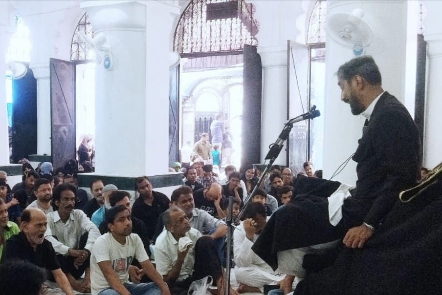 इमामबाड़ा जन्नत मआब सैयद तकी साहब अकबरी गेट लखनऊ में अशरए मुहर्रम की चौथी मजलिस को मौलाना सैयद सैफ अब्बास नकवी साहब ने “अहलेबैत नजात का रास्ता” के विषय पर संबोधित करते हुए कहा कि अहलेबैत अलैहिस्सलाम की मिसाल उस कश्ति की तरह है जो लोगों के लिए निजात का रास्ता प्रदान करती है,और बुराई से निकालकर अच्छाई की ओर ले आती है।