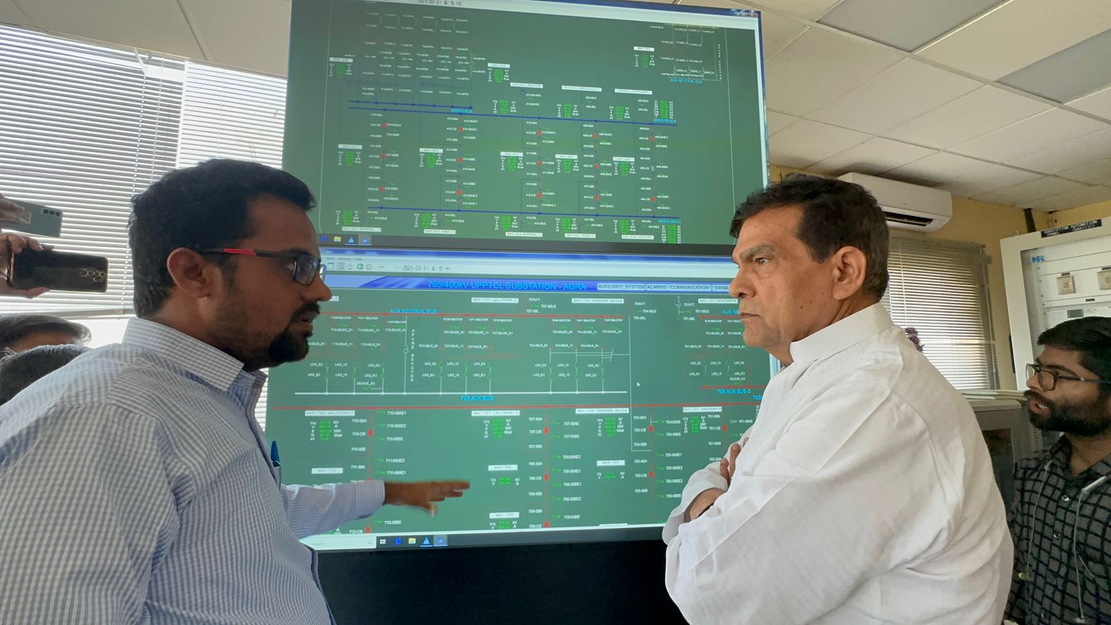 प्रदेश के नगर विकास एवं ऊर्जा मंत्री श्री ए0के0 शर्मा आज सायं 5:00 बजे 765/400 केवी विद्युत उपकेंद्र फतेहाबाद, आगरा तथा उ0प्र0 पावर ट्रांसमिशन कारपोरेशन लिमिटेड ललितपुर-आगरा पारेषण तंत्र तथा ललितपुर-आगरा 765 केवी ट्रांसमिशन लाइन का औचक निरीक्षण किया। इस दौरान उन्होंने उपकेन्द्र की लॉगबुक,उपस्थिति रजिस्टर , इनकमिंग/आउटगोइंग सप्लाई चार्ट, ग्रिड मैप तथा परिसर में बने व बोल्टेज को अप/डाउन करने वाले रिएक्टर, सप्लाई देने वाले ट्रांसफार्मर का भी निरीक्षण किया।