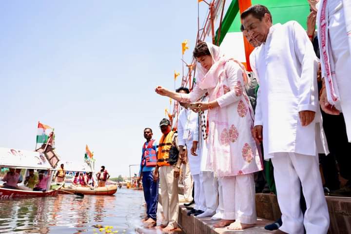 कांग्रेस पार्टी के राष्ट्रीय महासचिव प्रियंका गांधी वाड्रा मध्य प्रदेश के जबलपुर में गौरीघाट पर मां नर्मदा की पूजा-अर्चना कर प्रदेश और देश के कल्याण की कामना की और मां नर्मदा जी का आशीर्वाद लेकर ‘विजय शंखनाद’ रैली को संबोधित किया।