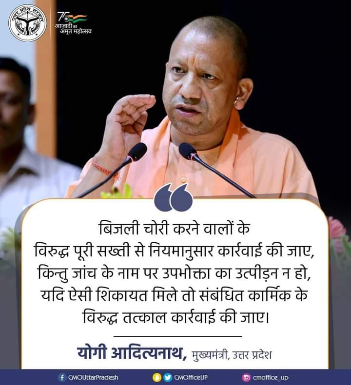 बिजली चोरी करने वालों के खिलाफ नियमानुसार कार्रवाई हो,जांच के नाम पर उपभोक्ताओं का उत्पीड़न न हो: योगी