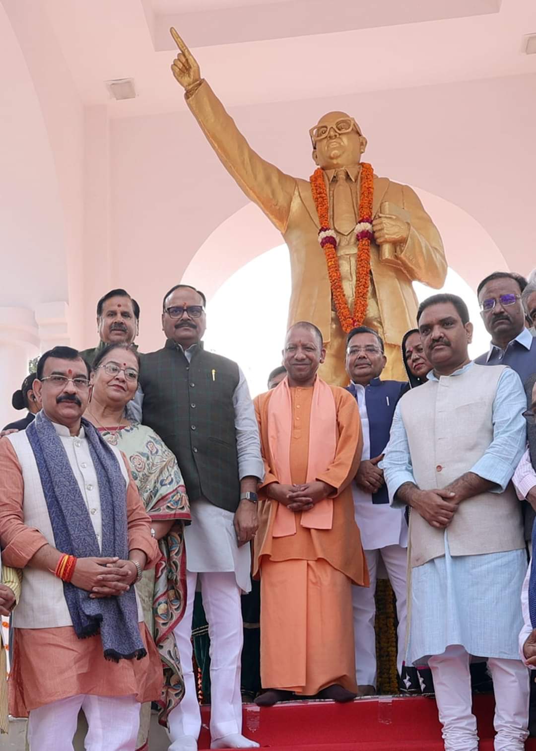 लखनऊ उत्तर प्रदेश के मुख्यमंत्री योगी आदित्यनाथ मैं आज भारतीय संविधान के निर्माता,सामाजिक असमानता के उन्मूलन के लिये अपना जीवन समर्पित करने वाले भारत रत्न डॉ० भीमराव अंबेडकर जी के महापरिनिर्वाण दिवस पर उनकी प्रतिमा पर मुख्यमंत्री एवं अन्य वरिष्ठजनों के साथ पुष्पांजलि कर कोटिशः नमन करते हुए।