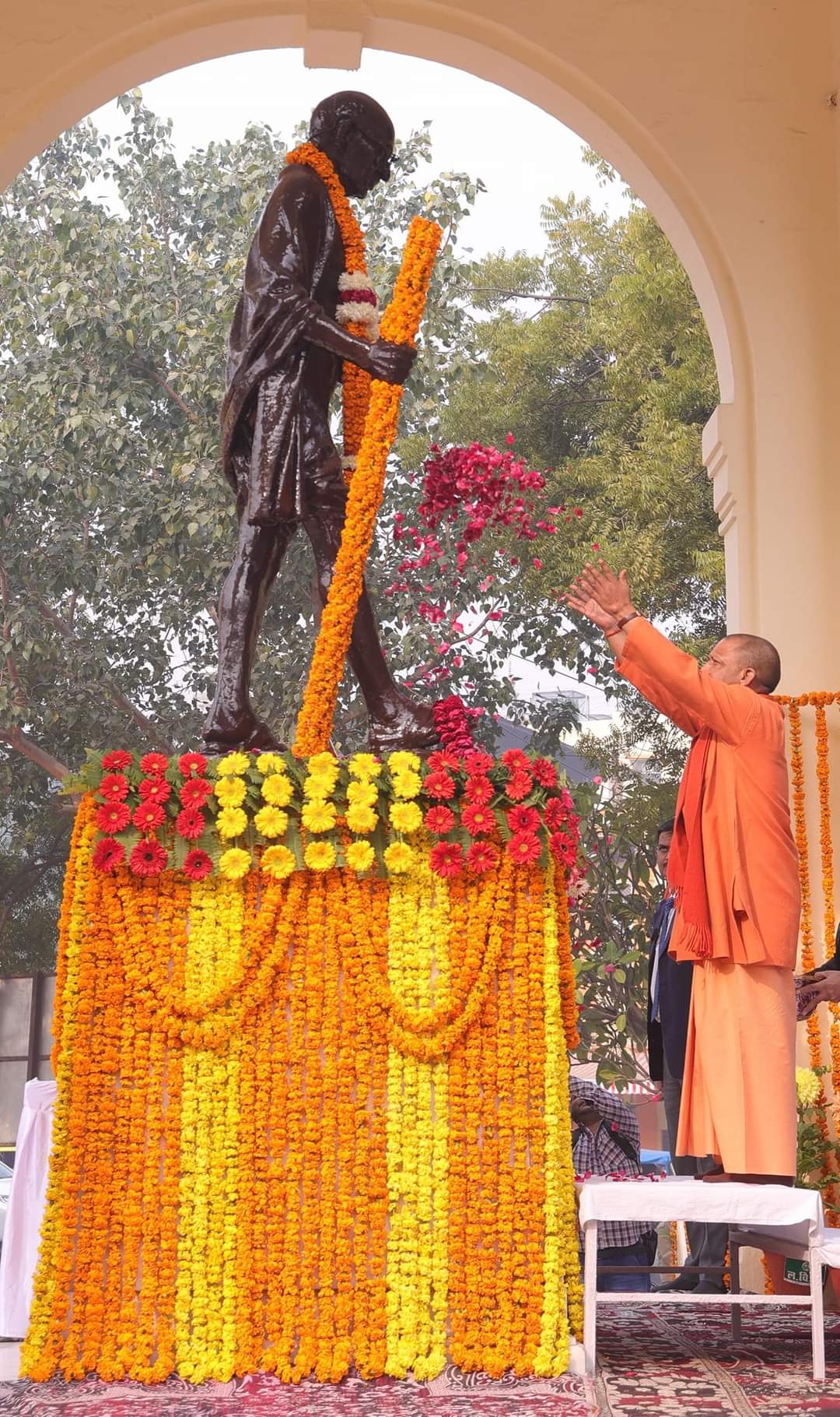 मुख्यमंत्री योगी आदित्यनाथ ने राष्ट्रपिता महात्मा गांधी की पुण्यतिथि पर प्रतिमा पर माल्यार्पण किया
