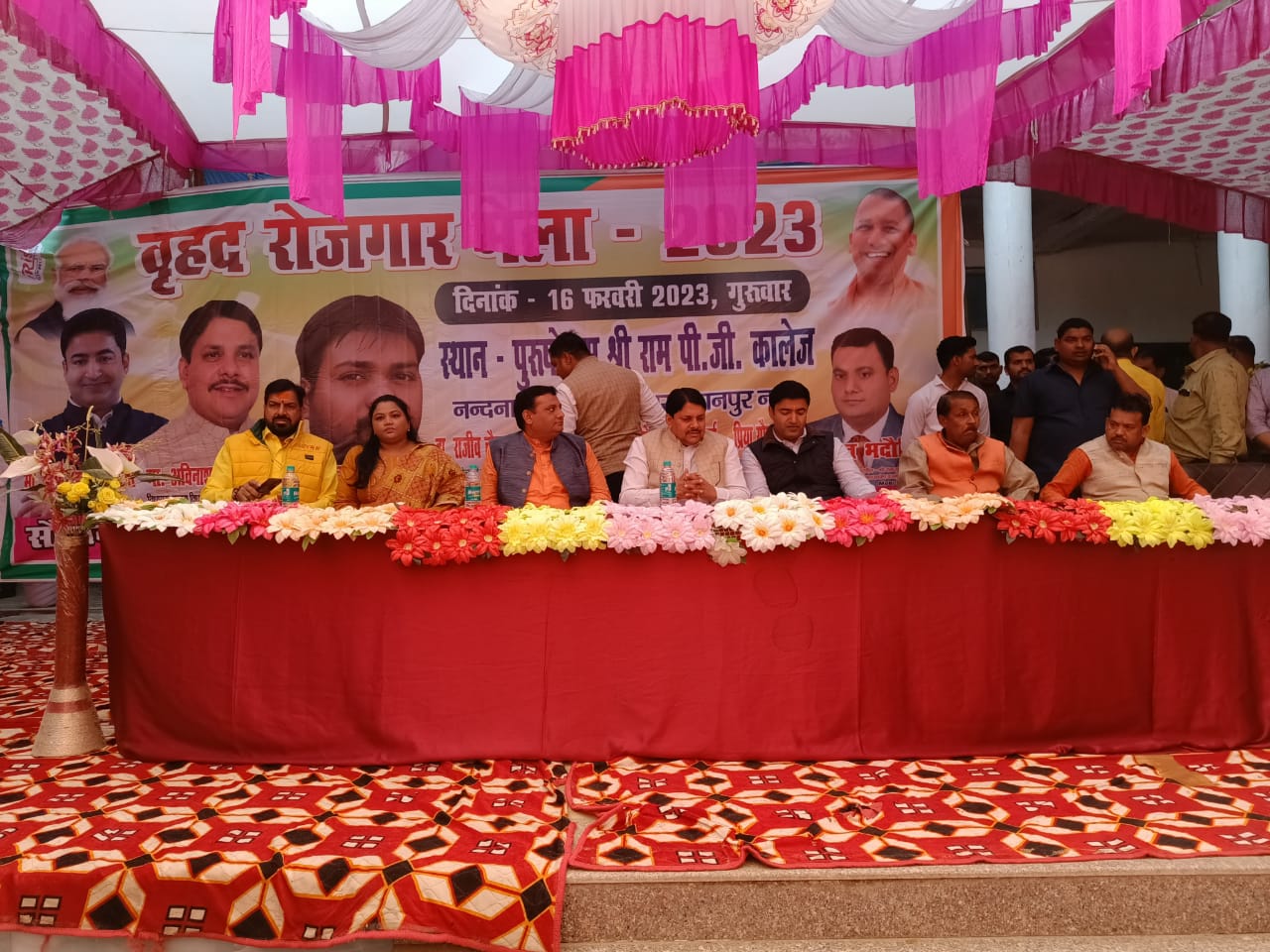 कानपुर -प्रादेशिक सेवायोजन कार्यालय कानपुर एंव पुरूषोत्तम श्री राम डिग्री कालेज नन्दनापतरसा घाटमपुर कानपुर के संयुक्त तत्वावधान में एक व्दिवसीय रोजगार मेले का आयोजन किया गया, मेले में 11कम्पनियों ने प्रतिभाग किया, मेले में कुल 986 अभ्यर्थियों ने प्रतिभाग किया जिसमें से 220अभ्यार्थी‌ चयनित किये गये, रोजगार मेले में एन आर जे इलेक्ट्रिक मोटर व्हीकल प्रा लि कानपुर में -11,पीपल ट्री ऑनलाइन प्रा लि में -05कैरियर ब्रिज स्किल साॅल्यूशन में -16 शिवांगी लाजिस्टिक प्रा लि में -29 एल आई सी कान चेम्बर कानपुर में -17 एस बी आई लाइफ इंश्योरेंस कानपुर में -18 जी फोर एससिक्योर साल्यूशन डण्डिया प्रा लि दिल्ली में -28कैरियर बिजार्ट में -45ग्रीब्स न्यू टाटा ट्राली कानपुर में -05, टायर्स इंन्डस्टीज में -14ब्राइटफ्यूचर आर्गेनिक हर्बल एण्ड आयुर्वेदिक प्रा लि में -32अभ्यार्थी चयनित किये गये, मेले का उद्घाटन कुंवर अविनाश सिंह चौहान एम एल सी विधान परिषद व विधायक अभिजीत सिंह ‌सागा ने किया, मेले में श्रीराम ग्रुप आफ एजुकेशन के चेयरमैन मनोज भदौरिया,आर एस भारतीय, एस पी व्दिवेदी सहायक निदेशक सेवा० कानपुर मण्डल जिला रोजगार सहायता अधिकारी निधि वर्मा भी उपस्थित थीं