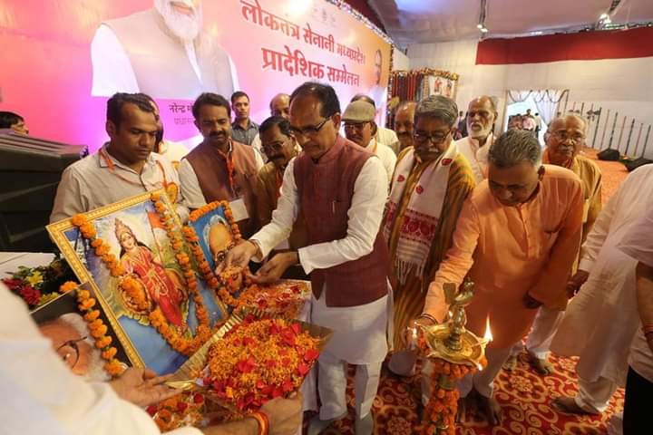 मध्य प्रदेश के मुख्यमंत्री शिवराज सिंह चौहान ने निवास परिसर में आयोजित प्रदेश के लोकतंत्र सेनानियों के सम्मेलन का दीप प्रज्वलित कर शुभारंभ किया।