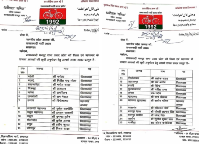 समाजवादी पार्टी के राष्ट्रीय अध्यक्ष एवं पूर्व मुख्यमंत्री श्री अखिलेश यादव की स्वीकृति से प्रदेश अध्यक्ष श्री नरेश उत्तम पटेल द्वारा अनुमोदित समाजवादी मजदूर सभा उ0प्र0 की 25 जिला/महानगर अध्यक्षों की सूची प्रदेश अध्यक्ष श्री धनी लाल श्रमिक ने जारी कर दी।