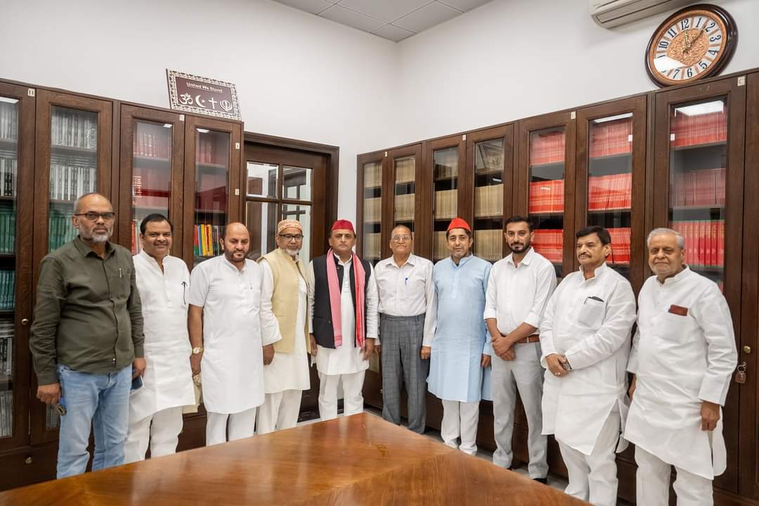 सपा राष्ट्रीय अध्यक्ष अखिलेश यादव से सपा प्रदेश अध्यक्ष जम्मू कश्मीर और उनके साथ कार्यकर्ताओं ने अखिलेश यादव से की शिष्यचारी भेट