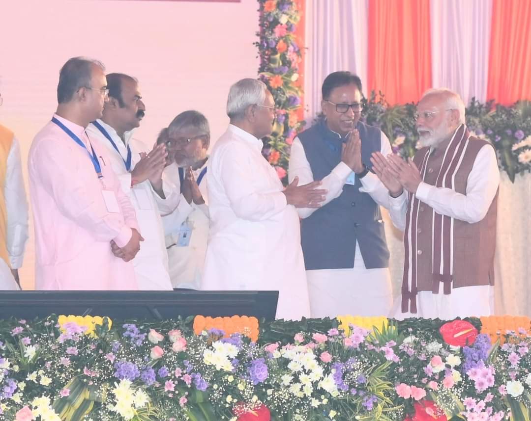 बिहार के मुख्यमंत्री नीतीश कुमार ने आज कहा कि प्रधानमंत्री श्री नरेन्द्र मोदी जी के द्वारा दरभंगा एम्स के शिलान्यास कार्यक्रम में शामिल हुआ। दरभंगा एम्स बन जाने से यहां के लोगों को चिकित्सा की बेहतर स...