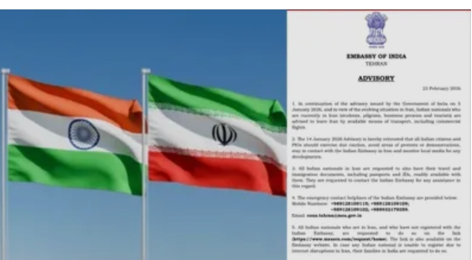 .Date: February 23, 2026, 10:04 PM ISTNew Delhi/Tehran: Amid deteriorating security conditions and rising tensions with the United States, the Indian Embassy in Tehran has issued an urgent advisory for all Indian citizens.