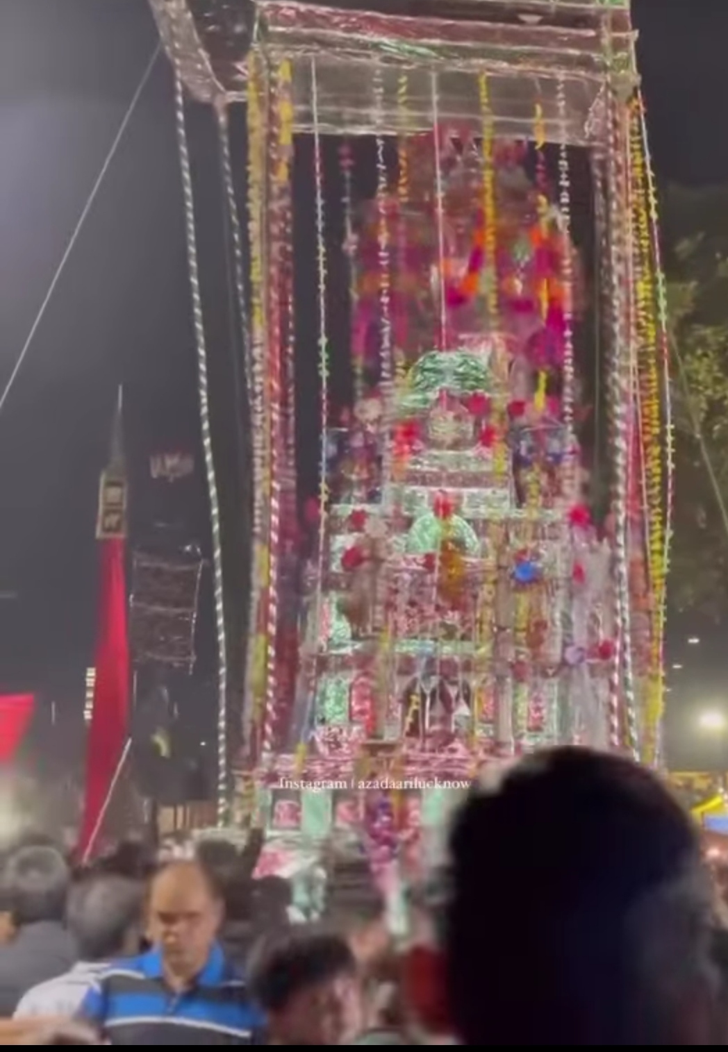 The Shahi Zari was crafted with months of effort by artisans. This year’s Zari, adorned with 20 small and four large domes, stood out as a masterpiece of craftsmanship, symbolizing the architectural grandeur of the Bada Imambara.