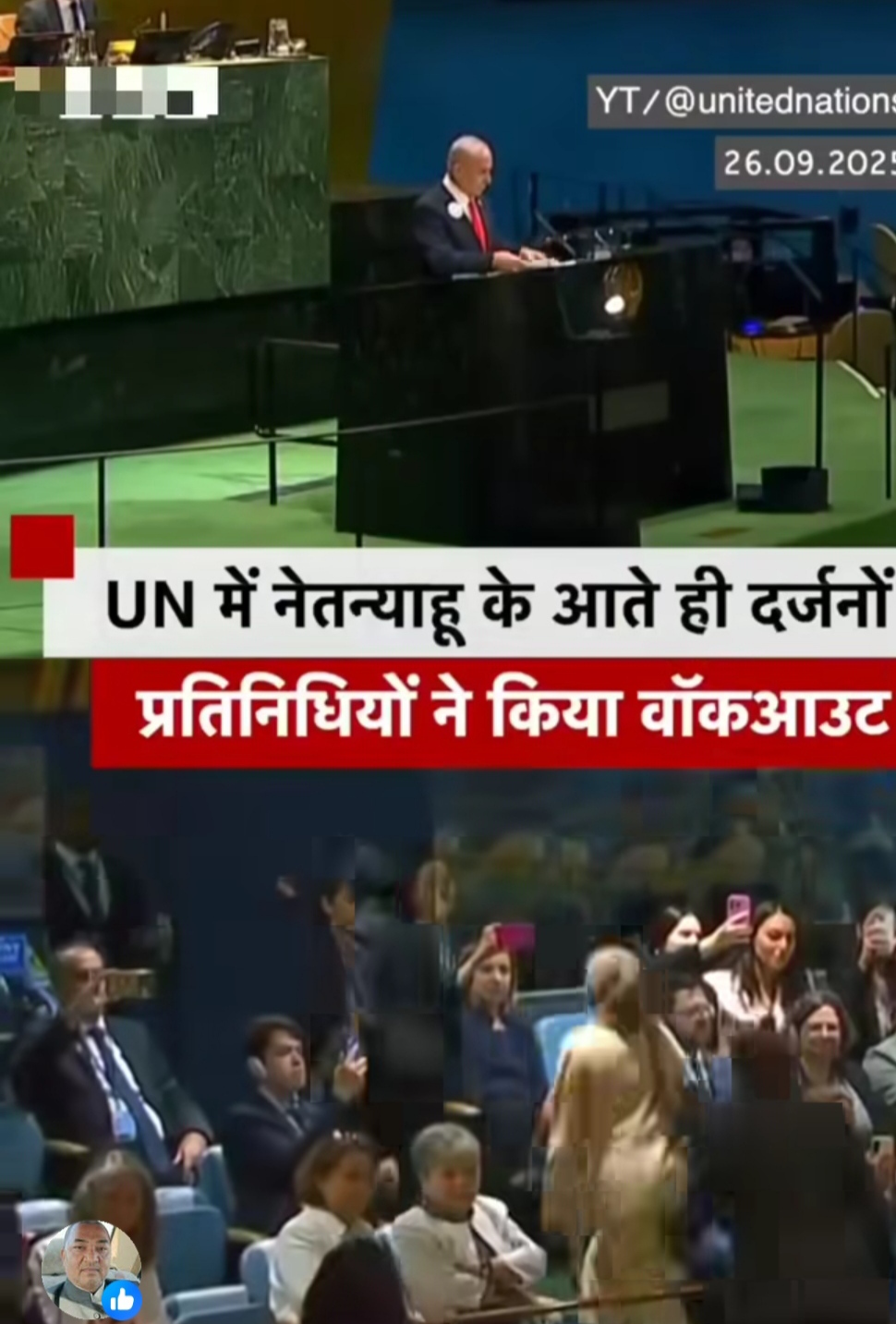 26 सितंबर 2025 को न्यूयॉर्क में संयुक्त राष्ट्र महासभा (UNGA) के 80वें सत्र के दौरान, इजरायल के प्रधानमंत्री बेंजामिन नेतन्याहू के भाषण शुरू करने से पहले ही कई देशों के प्रतिनिधियों ने विरोध में सभागा...