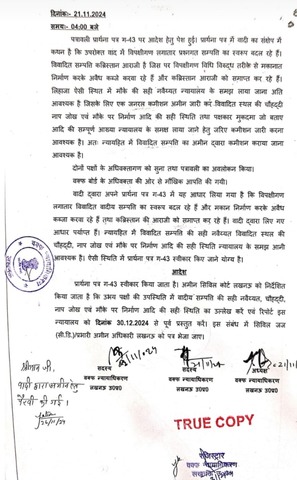 “दिनांक ५/१२/२०२५ को कब्रिस्तान तालकटोरा आराजी की कोर्ट आदेश से कमीशन हुआ, जिसमें कब्रिस्तान आराजी पर लगभग ४०० मकान, ६६ दुकानें, लगभग स्कूल आदि पाए गए। कथित मुतवल्ली शादाब आगा ने बताया कि उनके द...
